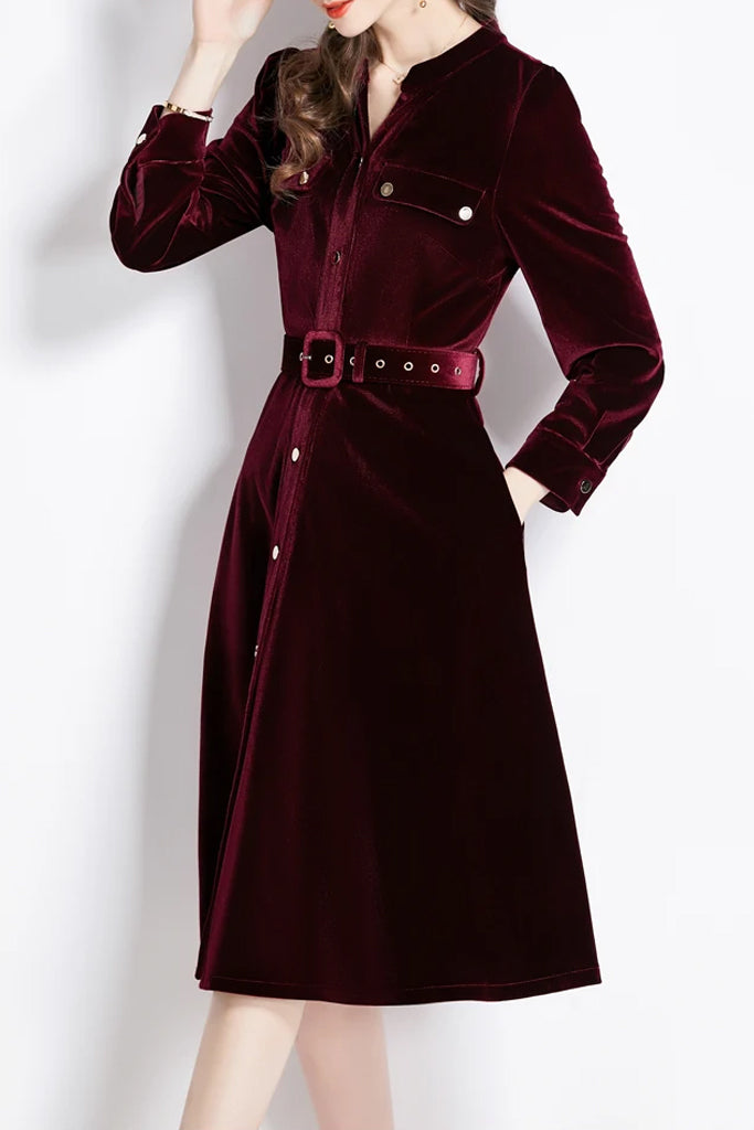La robe Lesety de Diane Ford sera le style que vous adopterez encore et encore pour les fêtes et les occasions spéciales. Confectionnée en velours bordeaux, la robe a des manches longues et est ornée de boutons dorés inspirés des styles vintage. Des talons et un rouge à lèvres brillant sont les seuls ajouts nécessaires pour compléter le look.