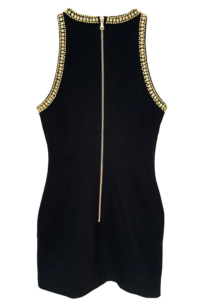 Marquez votre moment dans cette mini-robe de Philip Lang. Il est confectionné en tissu stretch ajusté et orné de clous métalliques. Il se porte sur une jupe crayon pour que vous puissiez mettre en valeur vos talons aiguilles préférés.