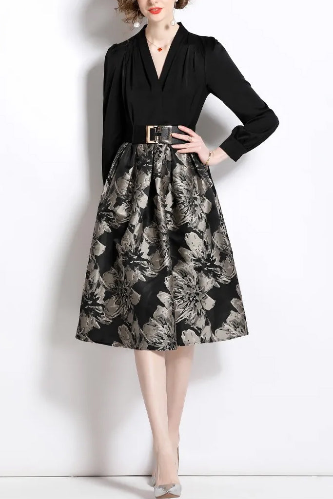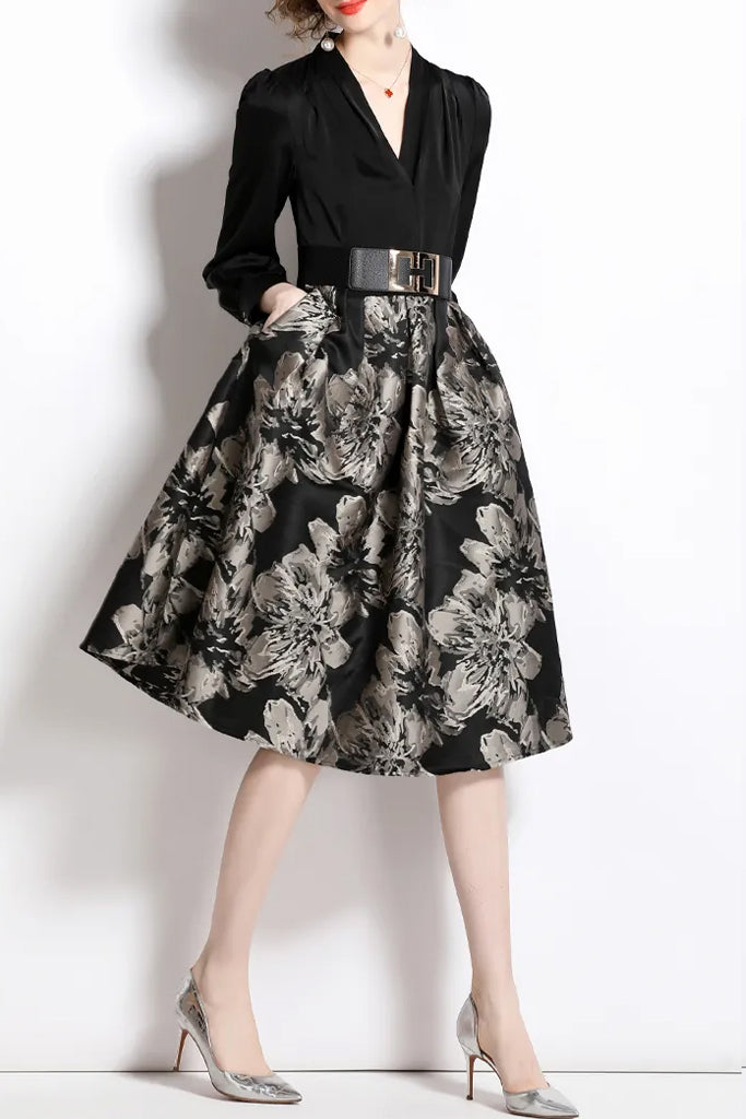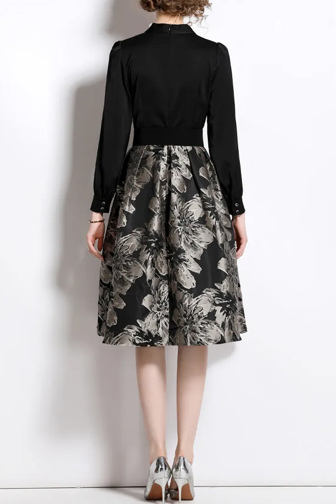 Robe Ligne Noire En Jacquard Floral