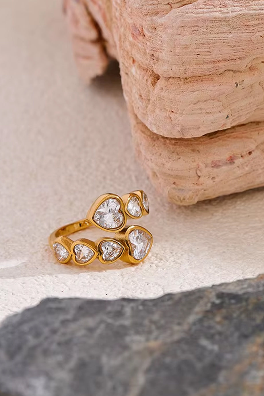 A unique ring. The Lattice ring is 18K gold-plated with a steel base, with a shape that hugs the finger. It is decorated with small heart-shaped crystals, which makes the ring romantic and impressive. One Size.