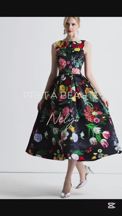 La robe Nely présente un imprimé floral saisissant, un décolleté souriant et est sans manches. Le bas a une ligne A ouverte. La robe est munie d'une fermeture éclair. Veuillez vous référer au tableau des tailles ci-dessous pour sélectionner la bonne taille.