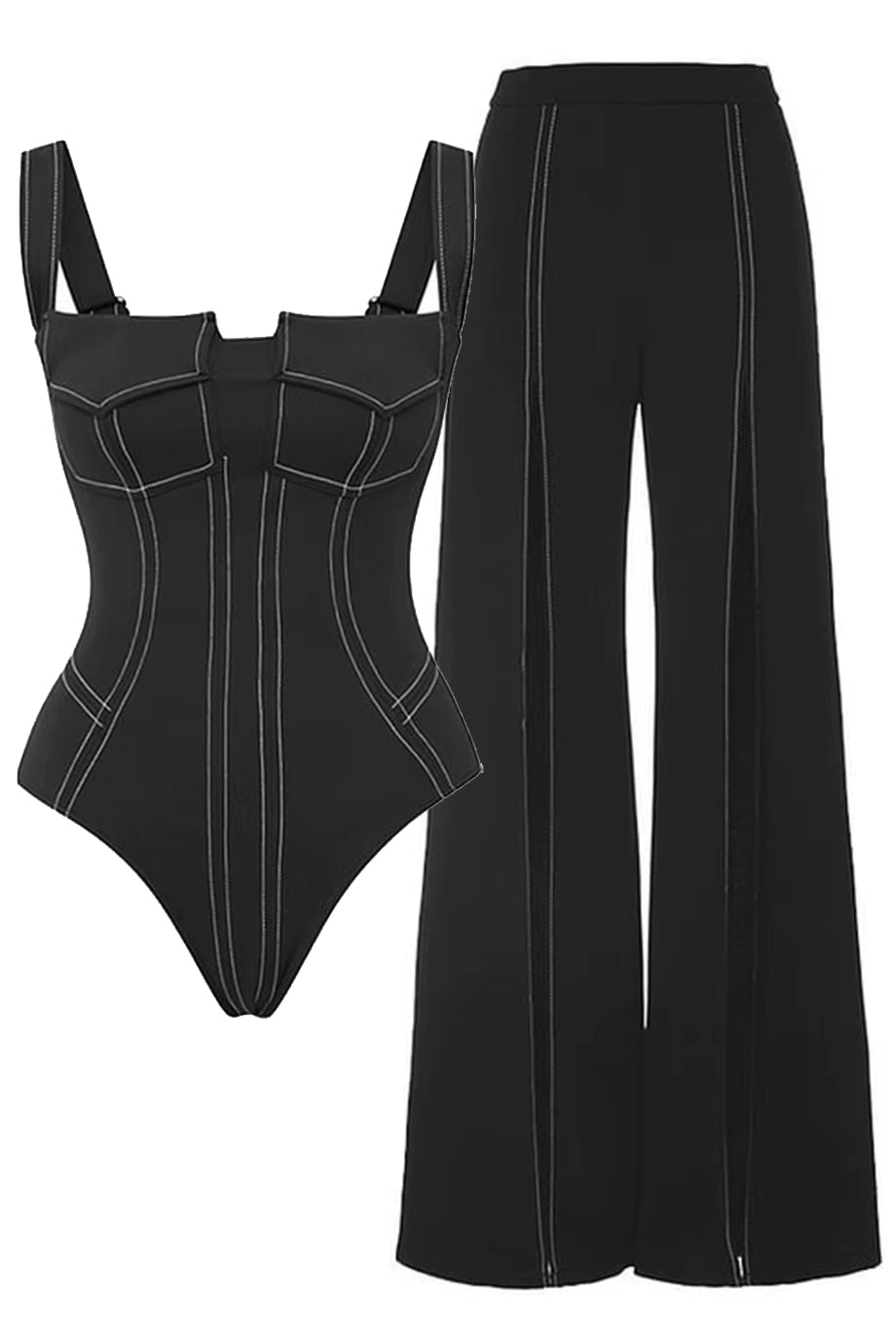 Velvet One-Piece Swimsuit and Pareo Pants Set