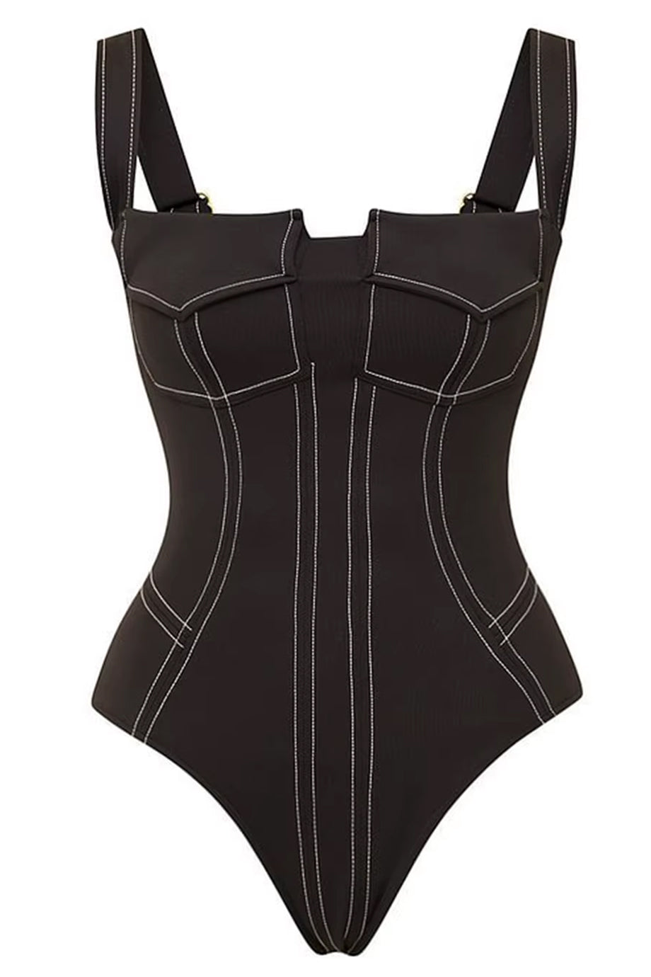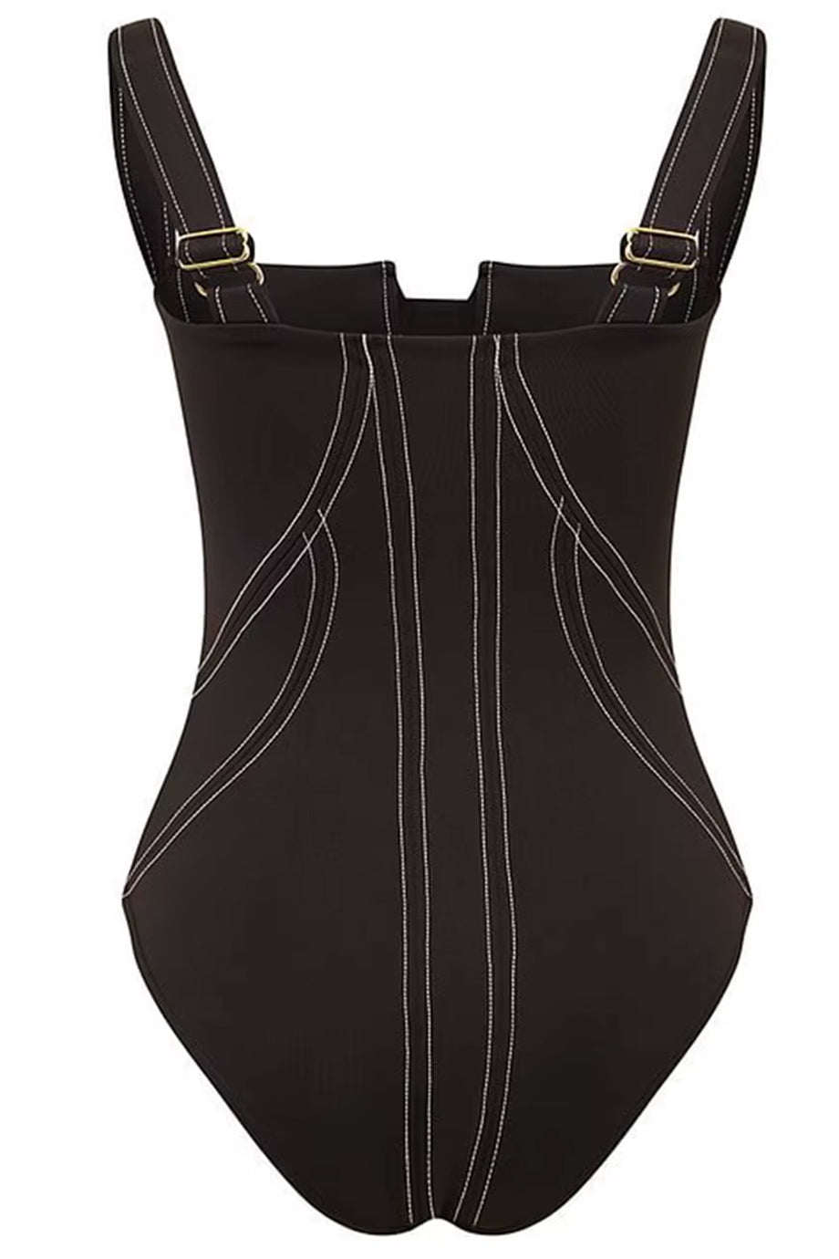 Set with one-piece swimsuit and pareo pants. The Velvet swimsuit has an impressive underwired bodice and is decorated with a design of decorative pockets and external seams. The pareo pants have a front opening for a sensual effect. Consult the size chart below for the correct size selection.