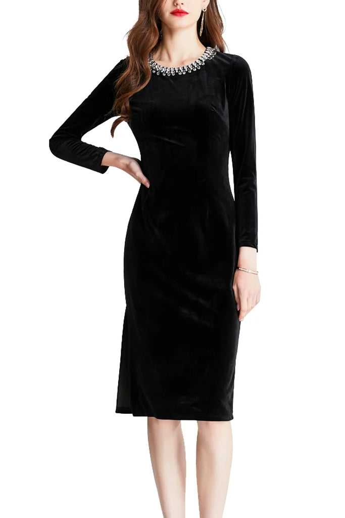 Edda Black Velvet Dress with Crystals