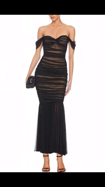 Dorothy Black Tulle Mesh Fishtail Dress