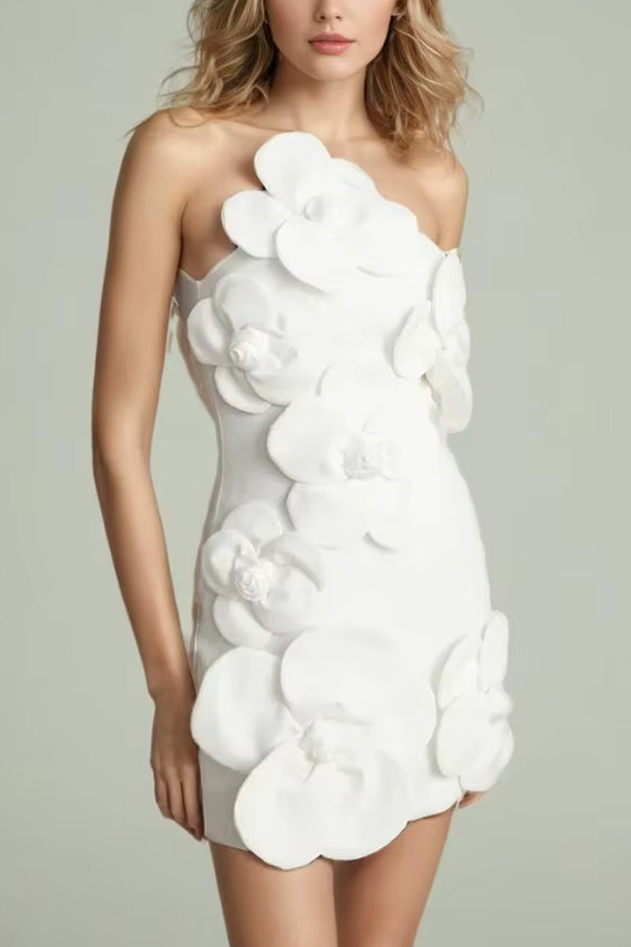 A special dress for those of you who want to show off your romantic side. The Cristal de Jardin dress has an asymmetrical one-shoulder neckline and an impressive bust. It is decorated with three-dimensional camelia flowers in various sizes. Please consult the size chart below for the correct size selection.
