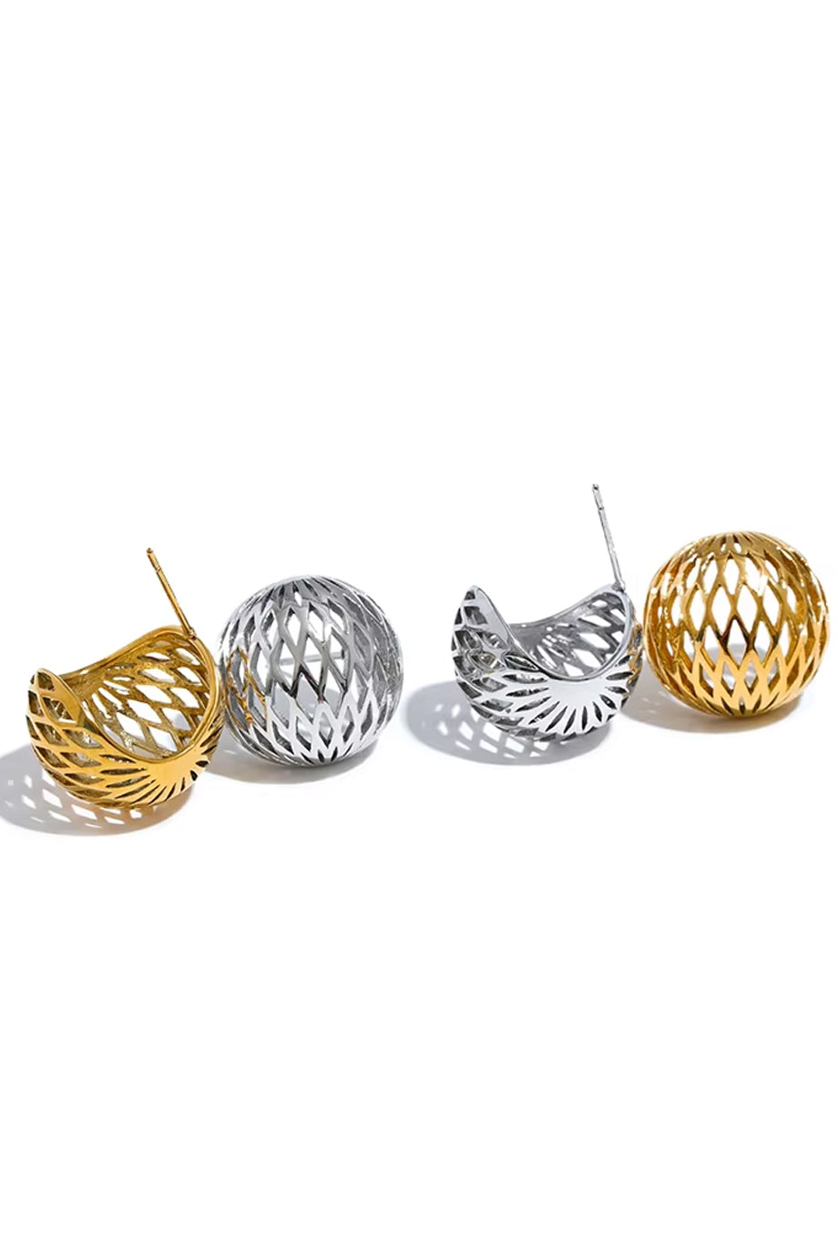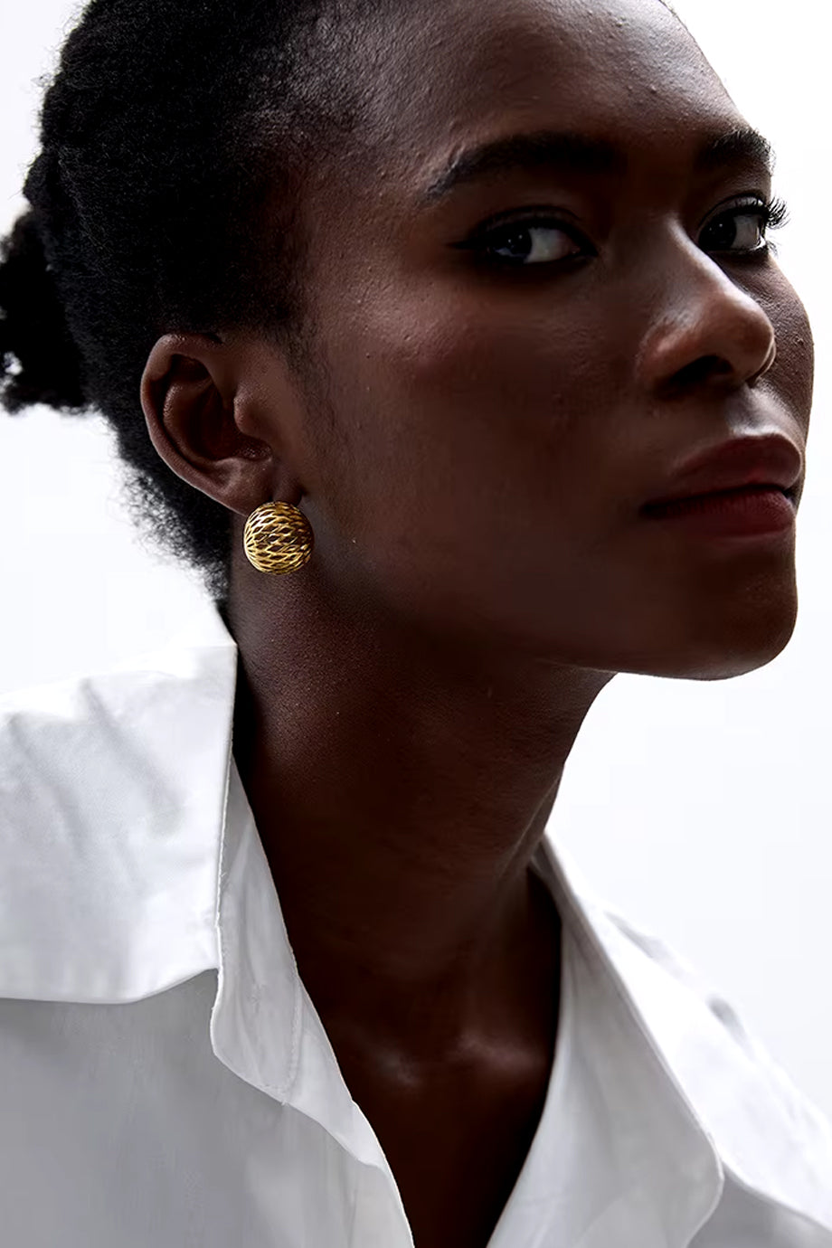 Τα σκουλαρίκια Harmony αναπαριστούν ένα πλέγμα. Είναι επίχρυσα 18Κ σε βάση από ατσάλι. Εφαρμόζουν με κούμπωμα πεταλούδας και είναι μόνο για τρυπημένα αυτιά.