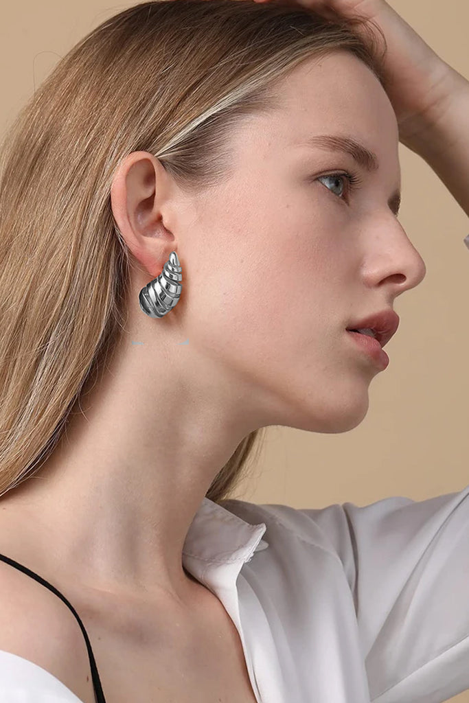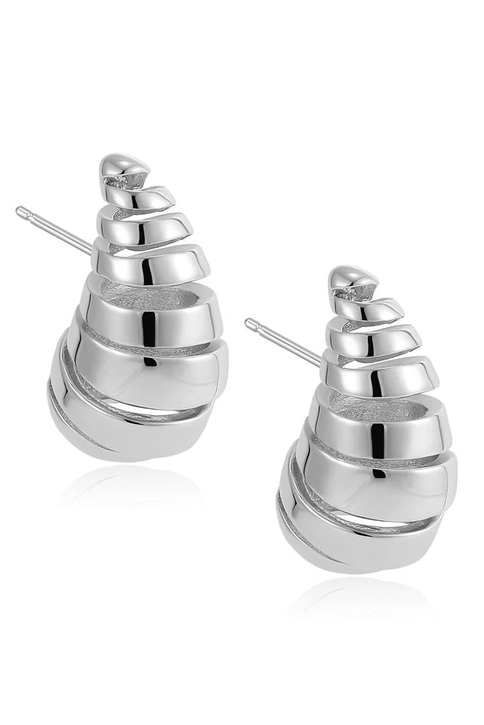 Tear drop earrings with elegant design. The Teardrop Swirl earrings are silver plated. They fit with a butterfly clasp and are for pierced ears only.