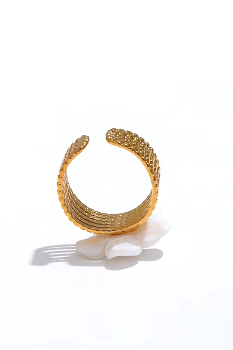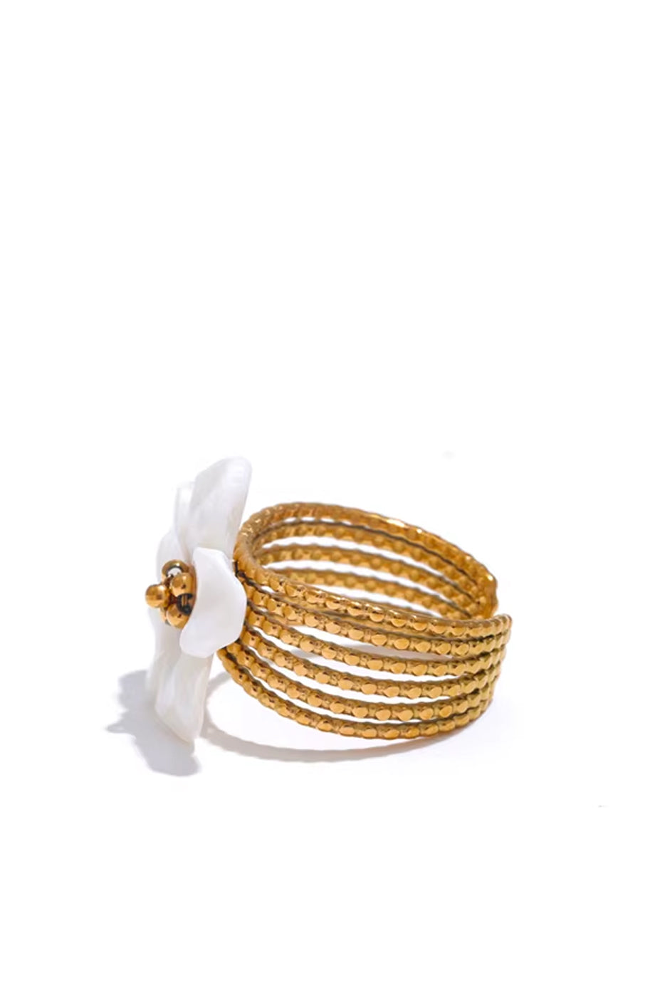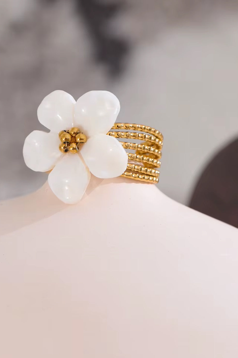 The Majestic ring is 18K gold plated with a steel base and decorated with a resin flower. One size.