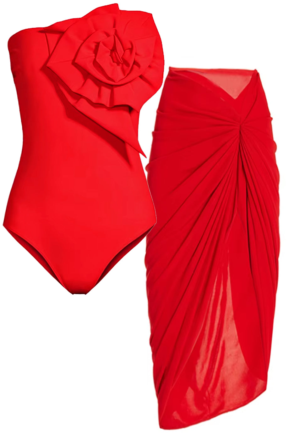 The Riviera Rose swimsuit is decorated with a large rose on the bust. The swimsuit is strapless, with internal support. Complete your look with the pareo skirt, creating an ideal set for the beach. Consult the size chart below for the correct size selection.